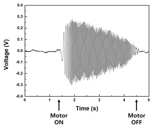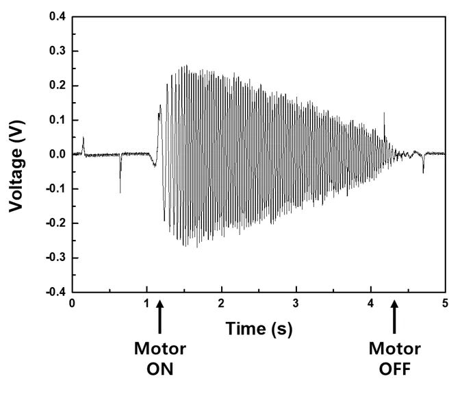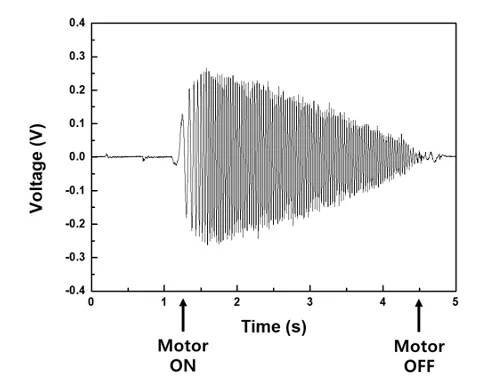 노이즈원과의 이격을 수행하고 CT를 통해 측정한 결과는 그림 9에서와 같이 모터 동작시에도 원 신호가 노이즈에 크게 영향을 받지 않는 모습을 보여줬습니다.