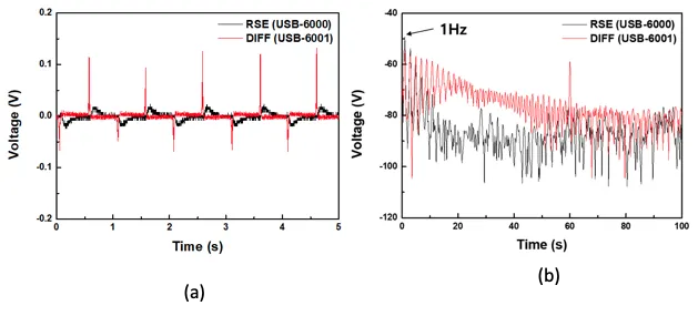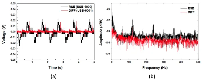이전까지 사용한 DAQ는 USB-6000으로, RSE(Referenced single-ended) 타입으로만 계측 가능한 장비였습니다. 여기에서 조금의 업그레이드를 거친 제품이 USB-6001인데, 이 DAQ의 경우 Differential 타입이 가능한 장점이 있습니다. 보통 RSE 타입에 비해 Differential 타입이 노이즈에 강하다고 알려져 있으므로 여기에서는 USB-6001를 활용하여 측정해보려고 합니다.