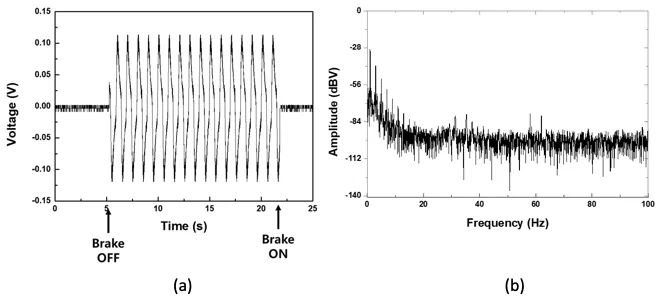 그림 8은 Hall effect sensor와 CT 체결 후 브레이크만 해제시켰을 때의 노이즈를 주파수 영역에서 비교한 것입니다.