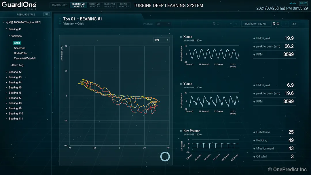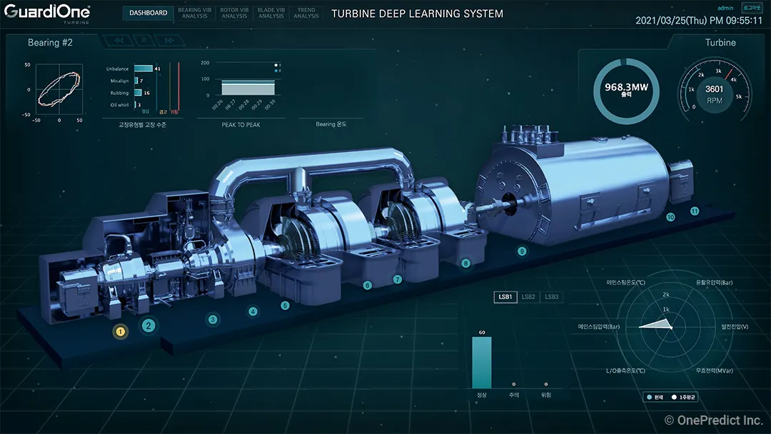 진동 및 비진동 데이터를 모두 활용하여 터빈의 상태를 진단하고 예측하는 기술은 원프레딕트가 가지고 있는 강점이며 이것을 통해 안정적인 터빈 운영에 많은 도움을 줄 것으로 생각됩니다. 특히 진동의 이상만을 감지하던 기존 솔루션과 달리 진동의 이상 원인을 파악하고 미래의 이상을 대비할 수 있게 해서 수리비용과 시간을 줄여 더 효율적인 발전소 운영을 가능하게 할 것으로 기대됩니다.