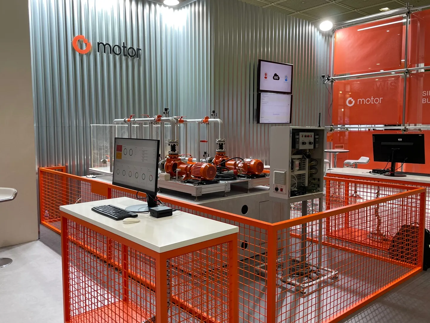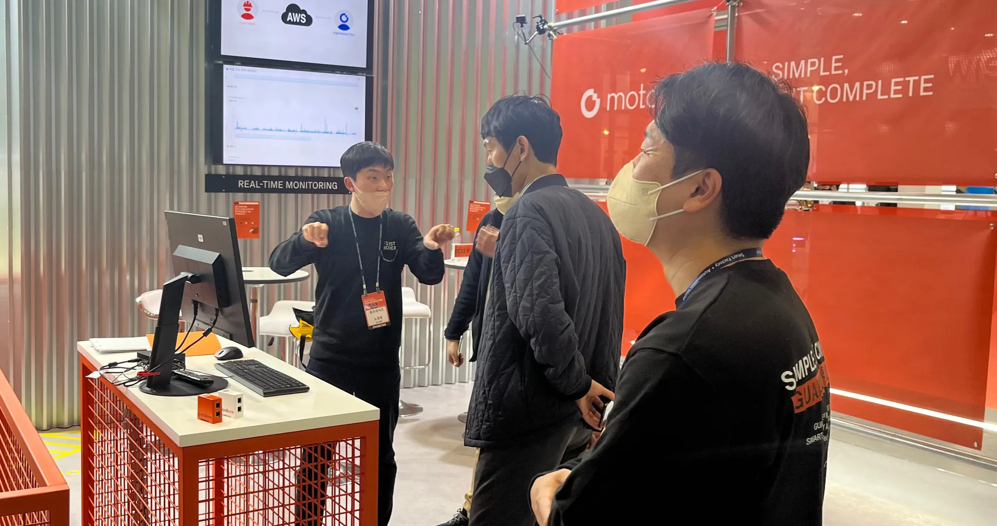 전류로 모터의 결함을 잡아낸다는 게 사실 아직까지 설비 예지보전 시장에서는 새로운 개념입니다. 그래서 이번 전시에서는 관람객들이 보다 쉽게 가디원 모터의 구조를 이해할 수 있게끔 실제와 그대로 구현한 MCC 및 하드웨어 구성 데모를 준비했습니다.