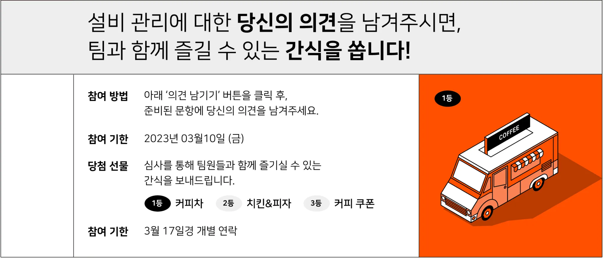 event 3 설비 진단에 대한 의견을 남기면 팀 간식을 보내드리는 이벤트까지!