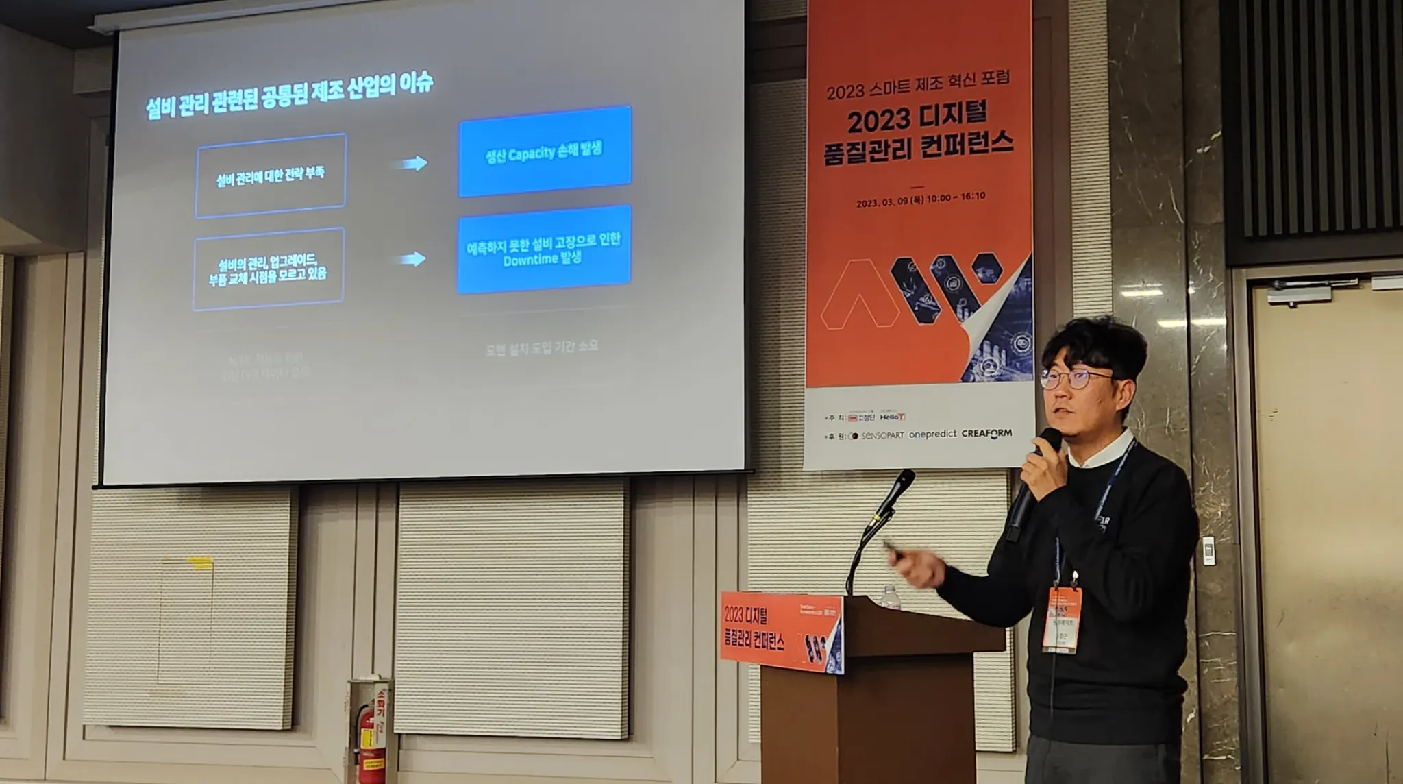 가디원 모터는 SF+AW 2023 부대행사로 진행되었던 <2023 디지털 품질관리 컨퍼런스>를 통해서도 소개되었습니다. 설비 예지보전 세션의 특별 연사로 초청을 받은 건데요. ‘산업AI 기반 예지보전 솔루션을 통한 스마트 제조혁신 가속화’라는 주제를 통해 제조업에 계신 분들이라면 누구나 공감할만한 포인트들과 함께 가디원 모터가 해결할 수 있는 영역에 대해 상세히 안내 드리는 자리였습니다. 약 200여명이 넘는 분들께서 참석해주신 가운데, 발표 시간은 물론 질의응답 시간까지 심도 있는 논의가 이어졌습니다.