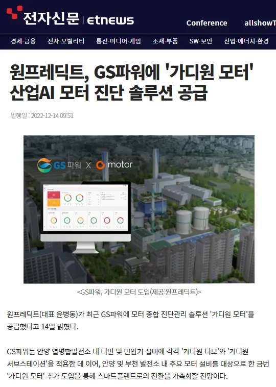 이 전략을 현실화해줄 기술과 솔루션을 찾던 중, 원프레딕트에서 국내 최고 수준의 산업AI 기술력을 기반으로 핵심 산업 설비의 건전성을 진단예측하는 제품을 제공하고 있는 것을 확인했습니다.