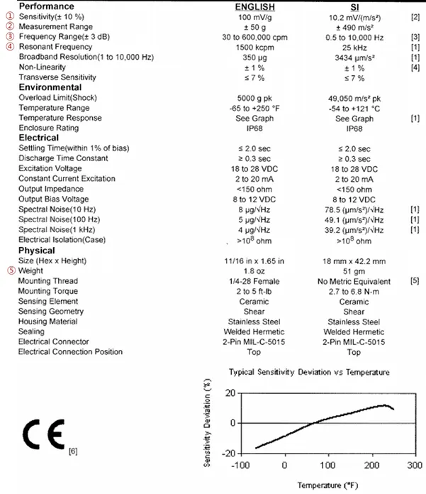 그림 6. IEPE 가속도계의 데이터시트 [1]