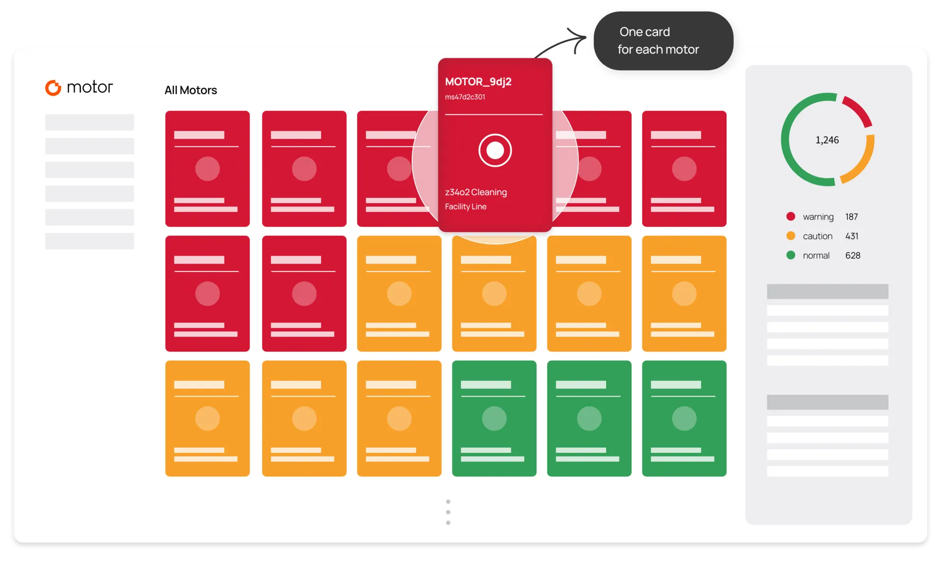 산업 현장에서 빼놓을 수 없는 설비인 ‘모터’의 경우, 현장마다 수십 대 - 수천 대가 운영되며 꾸준한 관리가 필요합니다. 현장마다 다르지만, 스케줄에 따라 수천 대의 모터를 점검하더라도 불시에 터지는 사고를 피하고 예방하는 것은 불가능합니다.