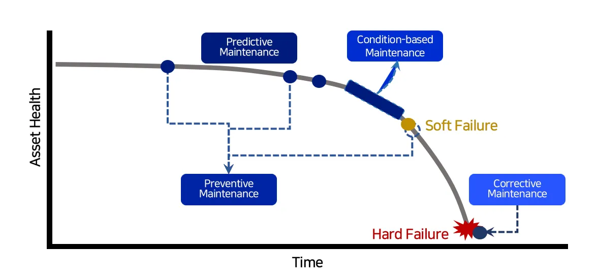 산업 설비의 수명에 따라 어느 시점에 유지보수 작업을 수행하는지에 따라 다양한 유지보수 방법이 존재합니다.