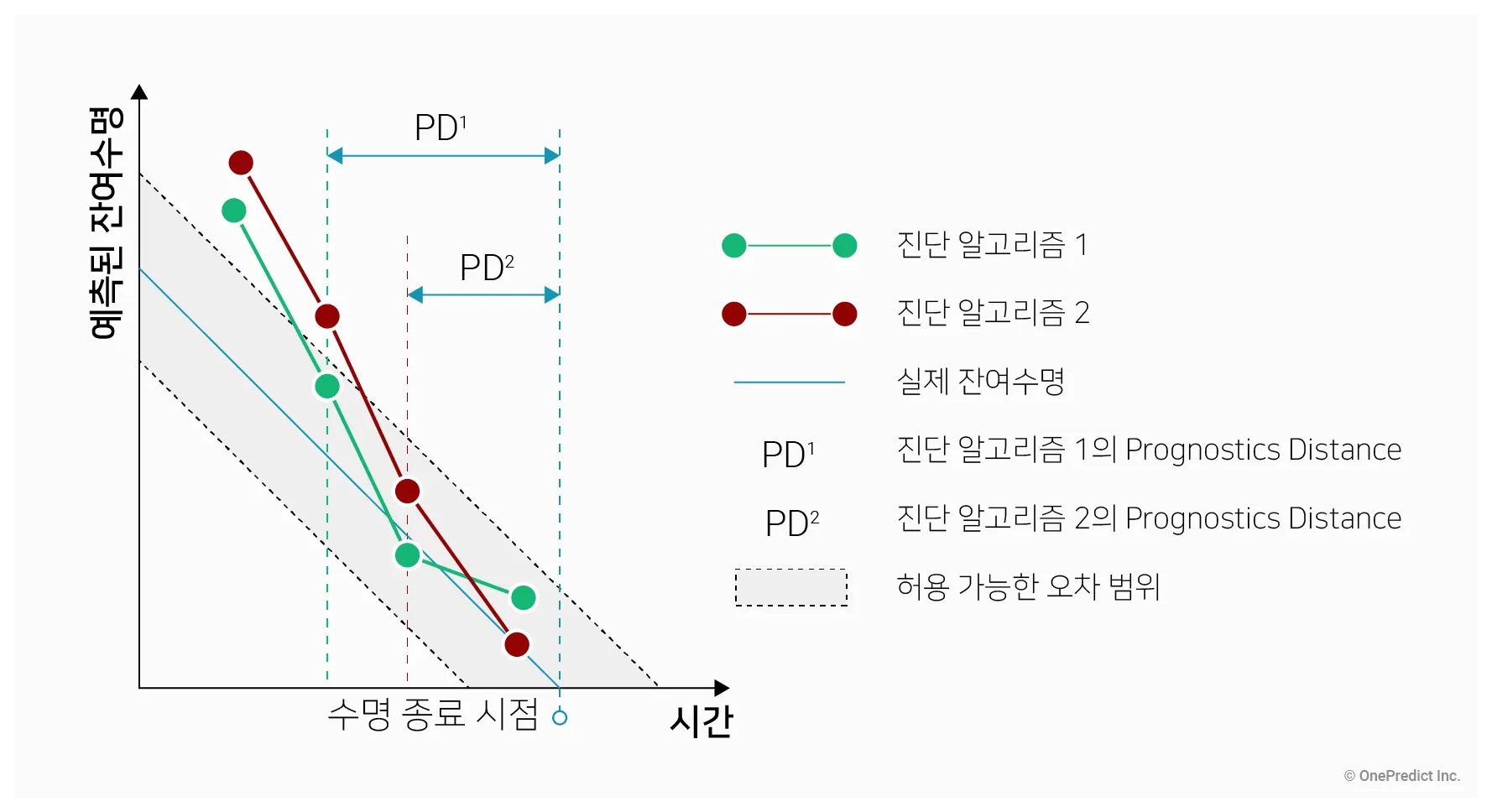 Prognostic distance: 예측 결과가 도출되는 시점과 시스템의 예상 고장 시간 사이의 시간 간격