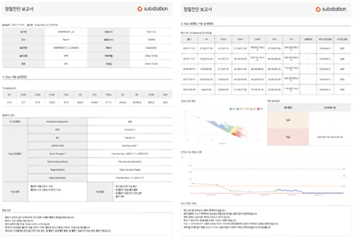 유입식 변압기에서 채취한 유중가스 데이터를 가디원 서브스테이션(웹)에 업로드하면, 설비의 현재 상태, 미래 상태, 결함 부위 및 원인까지 진단합니다