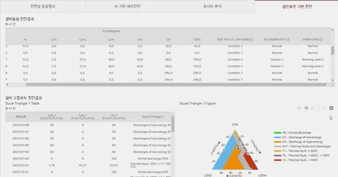 점검 차원에서 변압기 내부의 유중가스를 분석하고 그 값이 나오면, 이 수치가 정말 심각한 수치인건지, 아니면 아직은 괜찮은 상태인지 판단하는 게 어려웠어요. IEEE, IEC, 한국전력공사 등등 다양한 주체에서 판단 기준을 제공하지만 그 기준이 조금씩 다르기 때문에, 결국은 어떤 조치를 취하던 간에 설비 담당자 개인의 경험과 주관이 들어갈 수밖에 없었거든요.