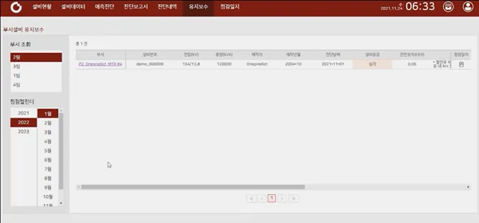 부서별, 날짜별로 유지보수 이력을 조회할 수 있는 페이지