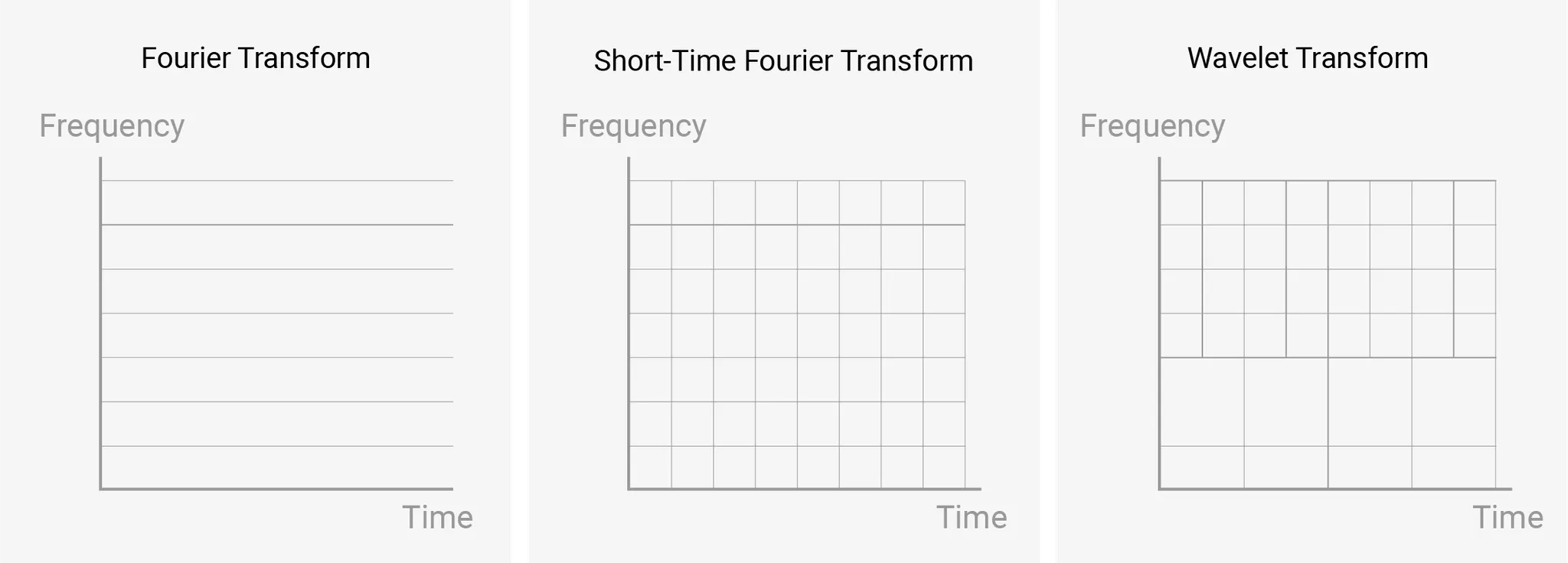 그림 4. Fourier Transform VS Short-Time Fourier Transform VS Wavelet Transform