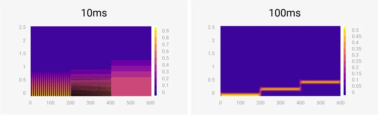 그림 3. 왼쪽 10ms Window, 오른쪽 100ms Window