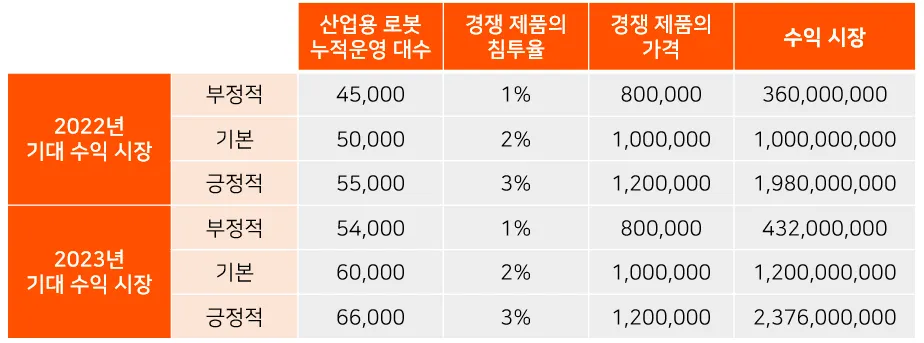 = (산업용 로봇 누적 운영 대수 x 경쟁 제품의 침투율) x 경쟁 제품의 가격