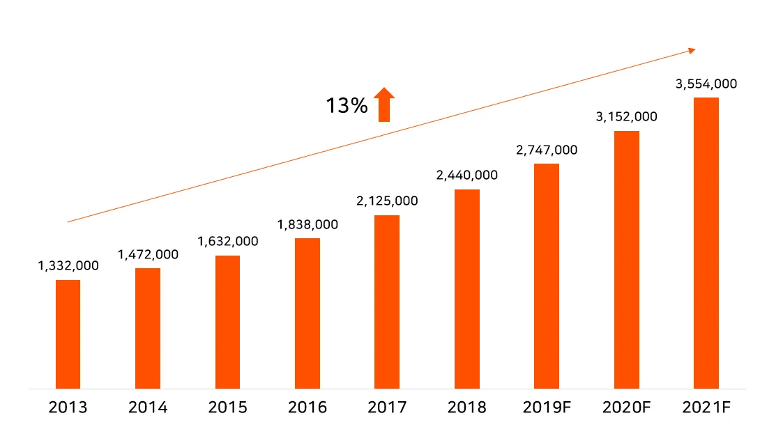 이 경우, A사의 제품 판매 대수를 정확하게 알지 못했지만, 전체 산업용 로봇에 대한 침투율(전체 모집단이 되는 시장 안에서 차지하는 비중) 정보를 찾을 수 있기 때문에 이를 기반으로 판매 가능한 제품 수를 추정해볼 수 있었습니다.
